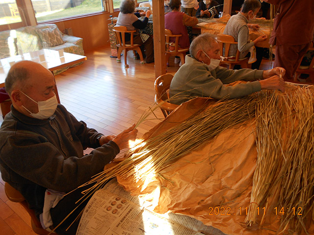 香風庵恒例のスゲを使ったしめ縄飾り作りが始まりました。夏に刈り取ったスゲを乾かしておいた物を使います。この活動が始まるといよいよ今年もあとわずかと思わされます。